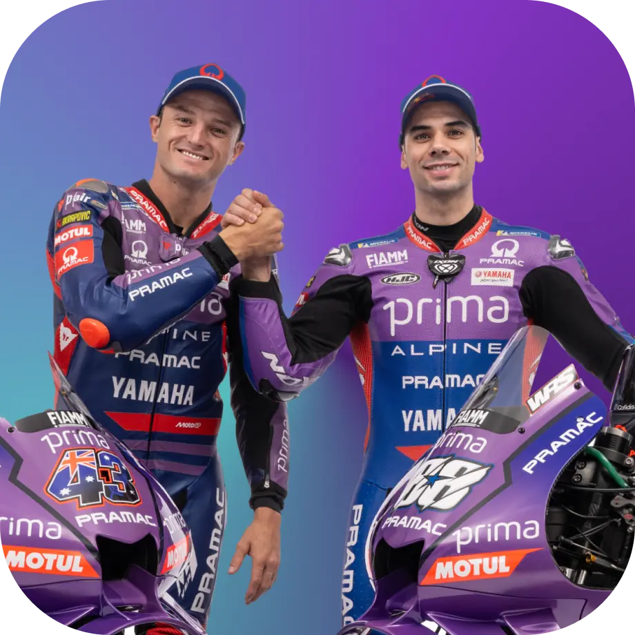 Guiados por una fuerte pasión por las dos ruedas y la velocidad, los pilotos de Prima Pramac Yamaha, Jack Miller y Miguel Oliveira, cuentan con el sólido apoyo del equipo dirigido por el Team Manager Gino Borsoi.